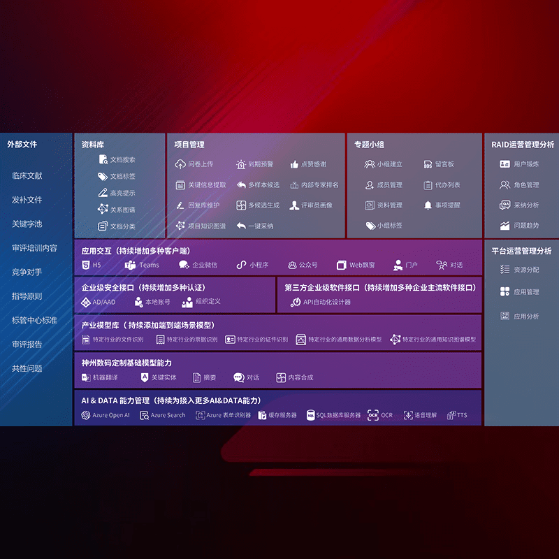 医疗器械产品上市前,,,,要熟悉严格与繁复评审标准,,,整理分析监管机构指导文件中的海量信息。。。。企业急需一个智能化解决方案,,提升知识管理效率,,,提高评审通过率,,,,以提升其市场竞争力。。。